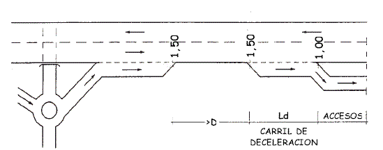 Acceso a carreteras de una sola calzada. Distancia de seguridad entre entrada de ramal y
