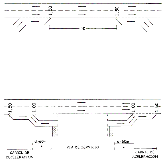 Acceso a carreteras de una sola calzada. Distancia de seguridad entre entrada y salida