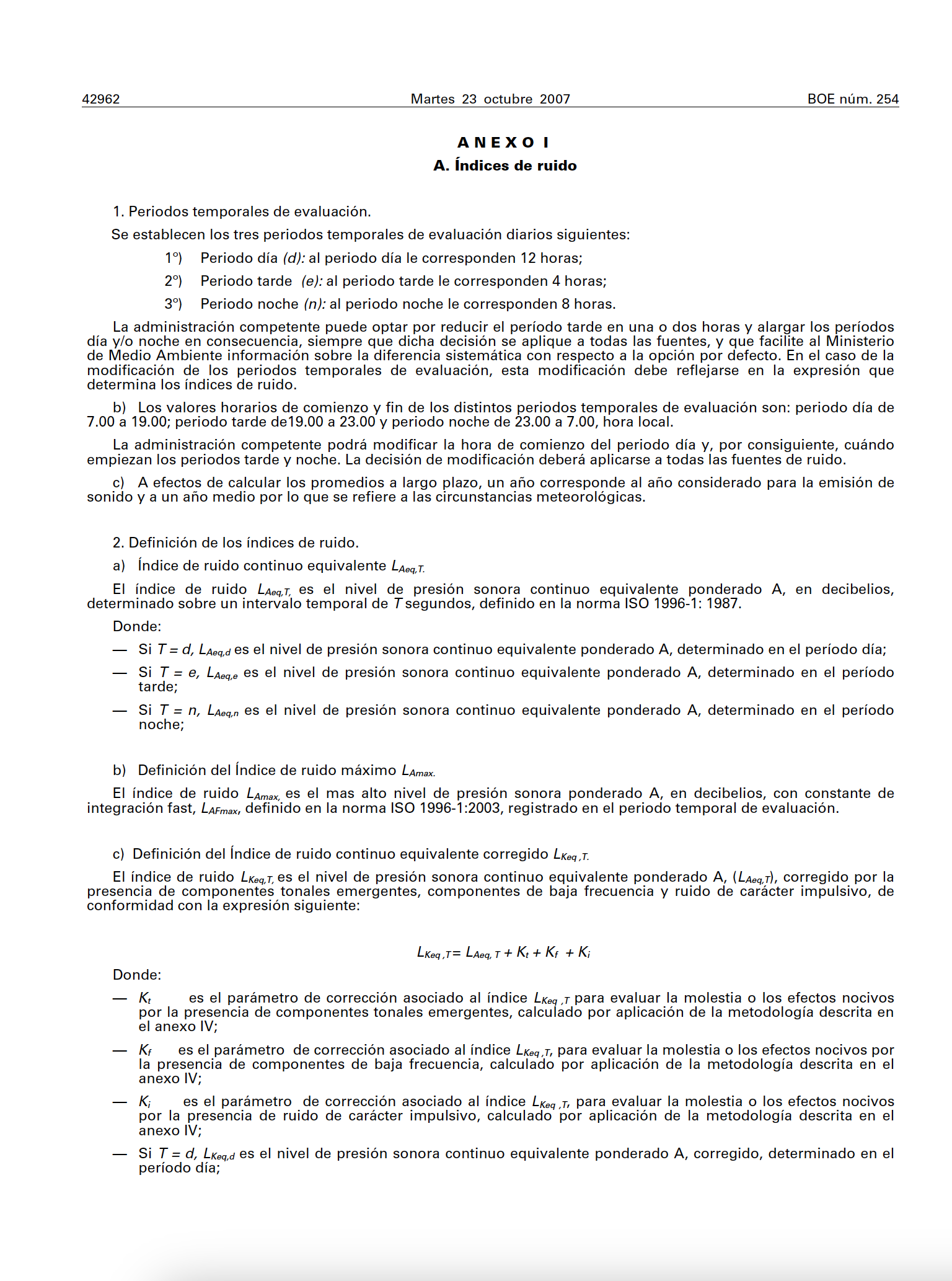 - f) LAeq,T : (Índice de ruido del periodo temporal T): el índice de ruido asociado a la molestia, o a los efectos nocivos, durante un periodo de tiempo T, que se describe en el anexo I.