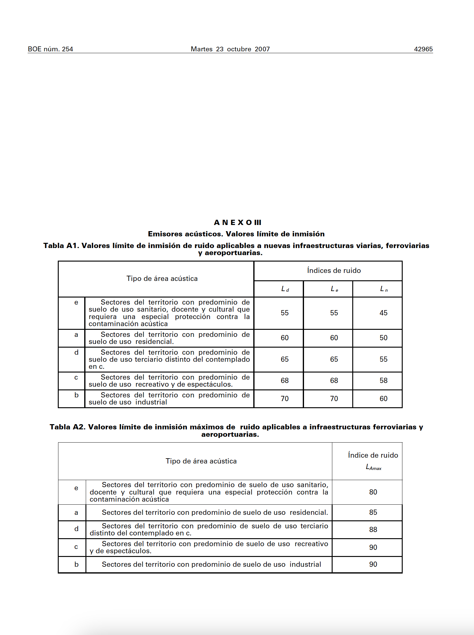 - Los valores límite de inmisión establecidos en el artículo 23, en relación con el Anexo III, para las nuevas infraestructuras.