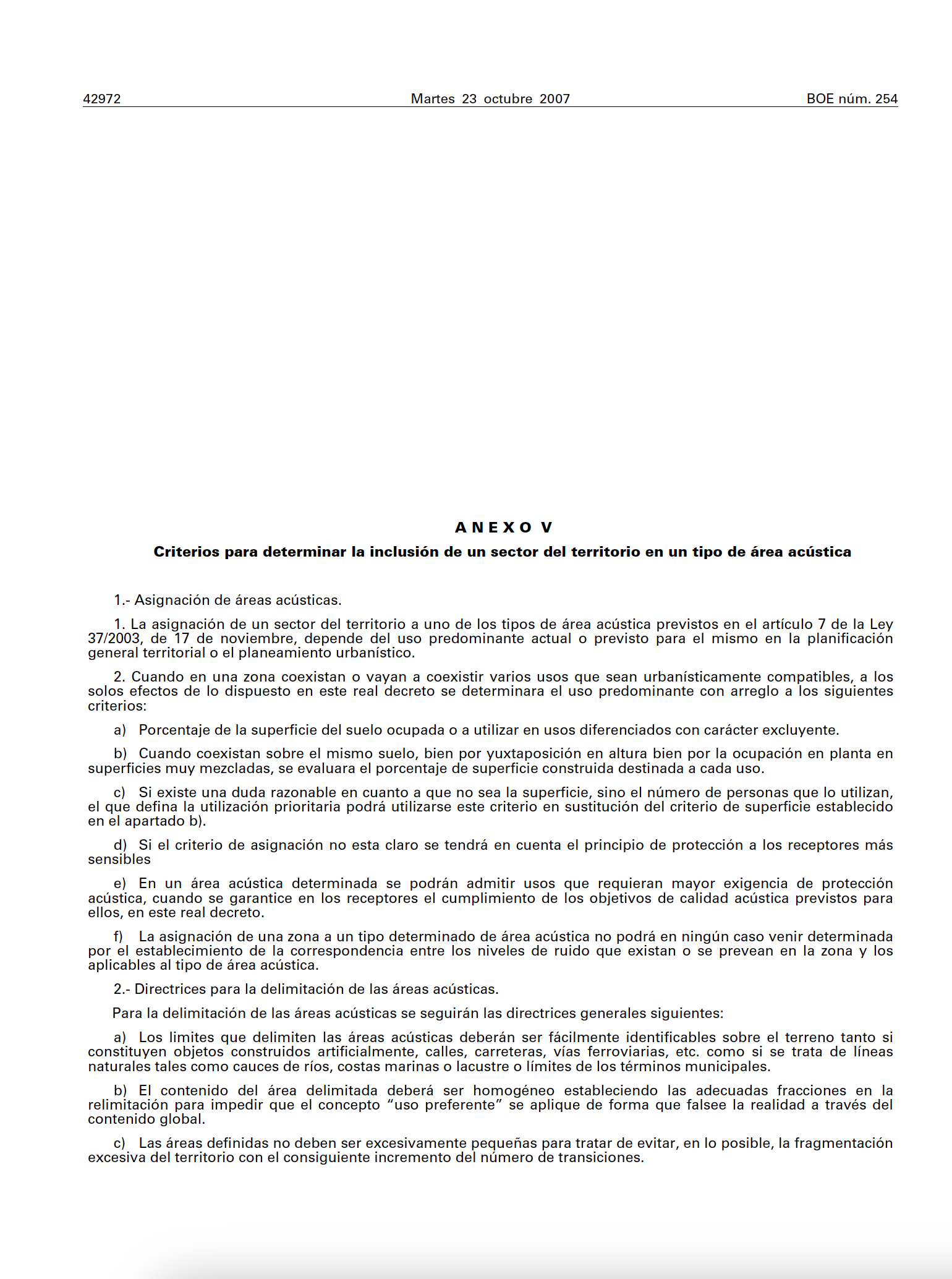 ANEXO V. Criterios para determinar la inclusión de un sector del territorio en un tipo de área acústica
