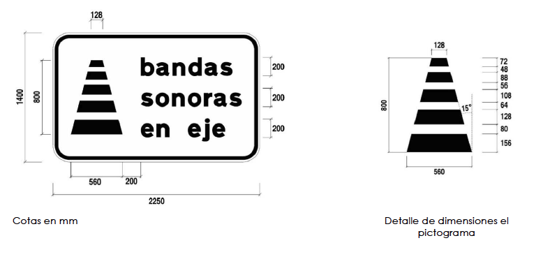 En cambio, en el caso de bandas dispuestas en los bordes de la calzada, teniendo en cuenta que el efecto sonoro —ya sea mediante bandas longitudinales fresadas u otros medios— es algo mucho menos novedoso, no se considera necesario advertir su presencia.