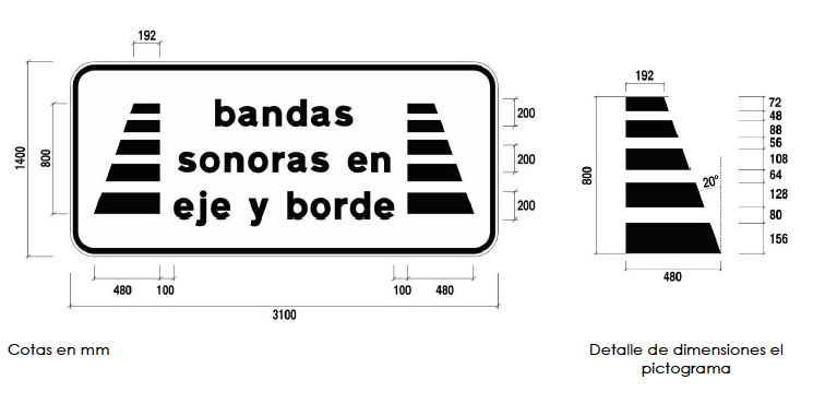 - El resto de valores se atendrán a lo establecido en la 8.1-IC señalización vertical