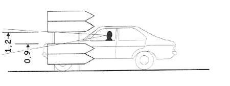 En intersecciones en que pudieran constituir un obstáculo a la visibilidad, los carteles flecha deberán dejar totalmente libre la altura comprendida entre 0,9 y 1,2 m sobre la calzada (fig. 29).