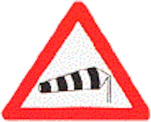 El peligro representado por la brusca aparición o desaparición de un viento transversal de cierta importancia y frecuencia, como al final de un tramo en desmonte o sobre obras de paso, se advertirá mediante una señal
