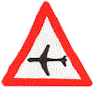 para indicar la proximidad de una pista de vuelo que pueda originar ruidos imprevistos debidos a aviones que vuelan a baja altura sobre la carretera.