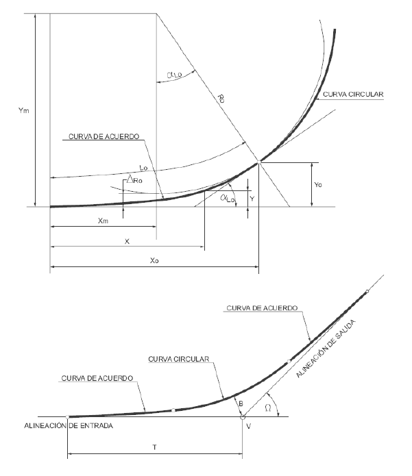 El radio deducido de la expresión anterior constituye el mínimo admisible en el diseño de la curva circular. La utilización sistemática de curvas circulares con radios mínimos se justificará suficientemente.