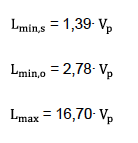 En caso de disponerse el elemento alineación recta, se procurará que las longitudes mínima y máxima, en función de la velocidad de proyecto (Vp), sean las obtenidas de las expresiones siguientes: