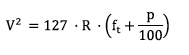 Según este modelo, la velocidad de la curva circular, el radio, el coeficiente de rozamiento transversal movilizado y el peralte se relacionan mediante la siguiente expresión: