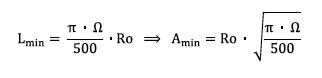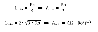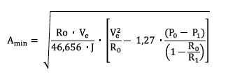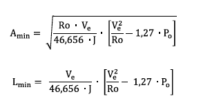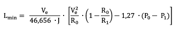 Las fórmulas simplificadas que definen los valores de Amíny Lmínpara el caso más usual en el que la clotoide une una alineación recta (R1= ∞ y P1=0) y una curva circular (R0 y P0) son las siguientes: