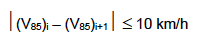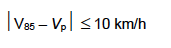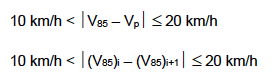 - V85 = Velocidad operativa característica (km/h) del elemento, representada por el percentil 85 de la distribución de velocidades temporales observadas en servicio.