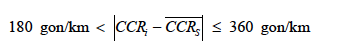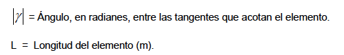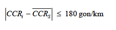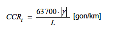 Se define la tasa de cambio de curvatura, en gonios por kilómetro, mediante la expresión: