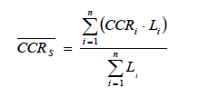 En un tramo que incluya un grupo de elementos, se define una tasa de cambio de curvatura global, en función de la media ponderada de tasas de los elementos constitutivos, excluidas las alineaciones rectas, mediante la expresión: