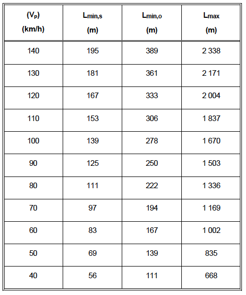 En la Tabla 4.1 se incluyen los valores de estas longitudes para diferentes valores de la velocidad de proyecto (Vp).