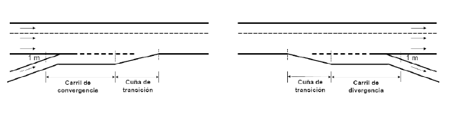 Se podrán utilizar dos clases de carriles de cambio de velocidad: carriles de aceleración y carriles de deceleración.