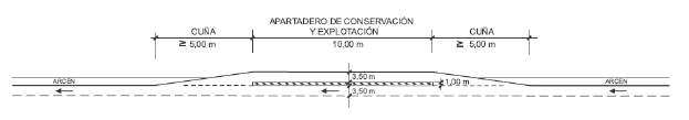 Los apartaderos de conservación y explotación y sus cuñas se dispondrán con la misma pendiente transversal que los arcenes de la calzada.