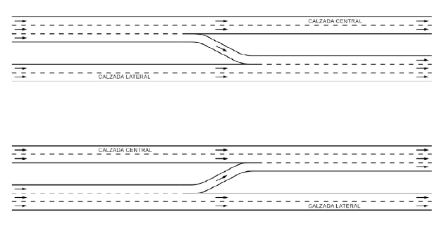 Podrán proyectarse asimismo confluencias y bifurcaciones en las que no se modifica el número de carriles.20
