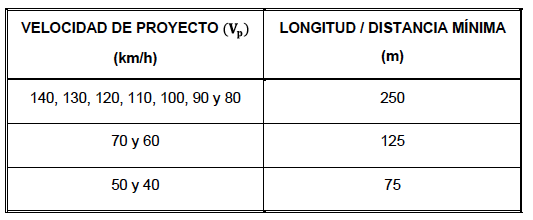 En una vía lateral las distancias entre cualquier tipo de conexión o acceso y la sección característica más cercana de la salida anterior desde el tronco o de la entrada posterior hacia el tronco deberán ser mayores o iguales que doscientos cincuenta metros ( 250 m).