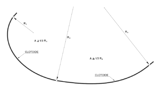 FIGURA A4.5. ALINEACIÓN CURVA TIPO V CONSTITUIDA POR DOS CURVAS CIRCULARES UNIDAS POR UNA CURVA DE ACUERDO INTERMEDIA.
